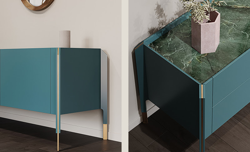 Αυτό που καθορίζει ως εντυπωσιακό τον μπουφέ LENK, είναι η σύνθεση των πάνελ και των μεταλλικών φύλλων, τα οποία τοποθετημένα το ένα δίπλα στο άλλο δίνουν σχήμα και δομή, τόσο λεπτεπίλεπτη και κομψή,που μοιάζουν με φύλλα χαρτιού.