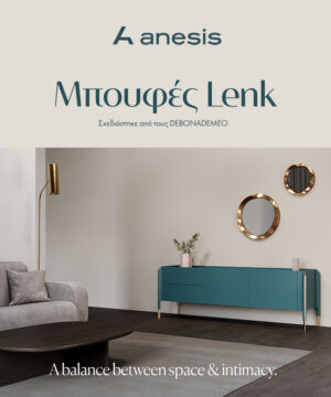Εμπνευσμένος από τη γεωμετρική αυστηρότητα της δεκαετίας του 1950 και την κομψότητα του Ιταλικού haute couture σχεδιασμού, o μπουφές LENK αποτυπώνει την υψηλής ποιότητας δεξιοτεχνία της παραγωγής μας