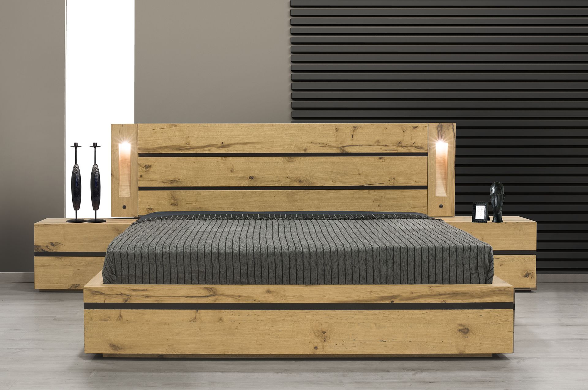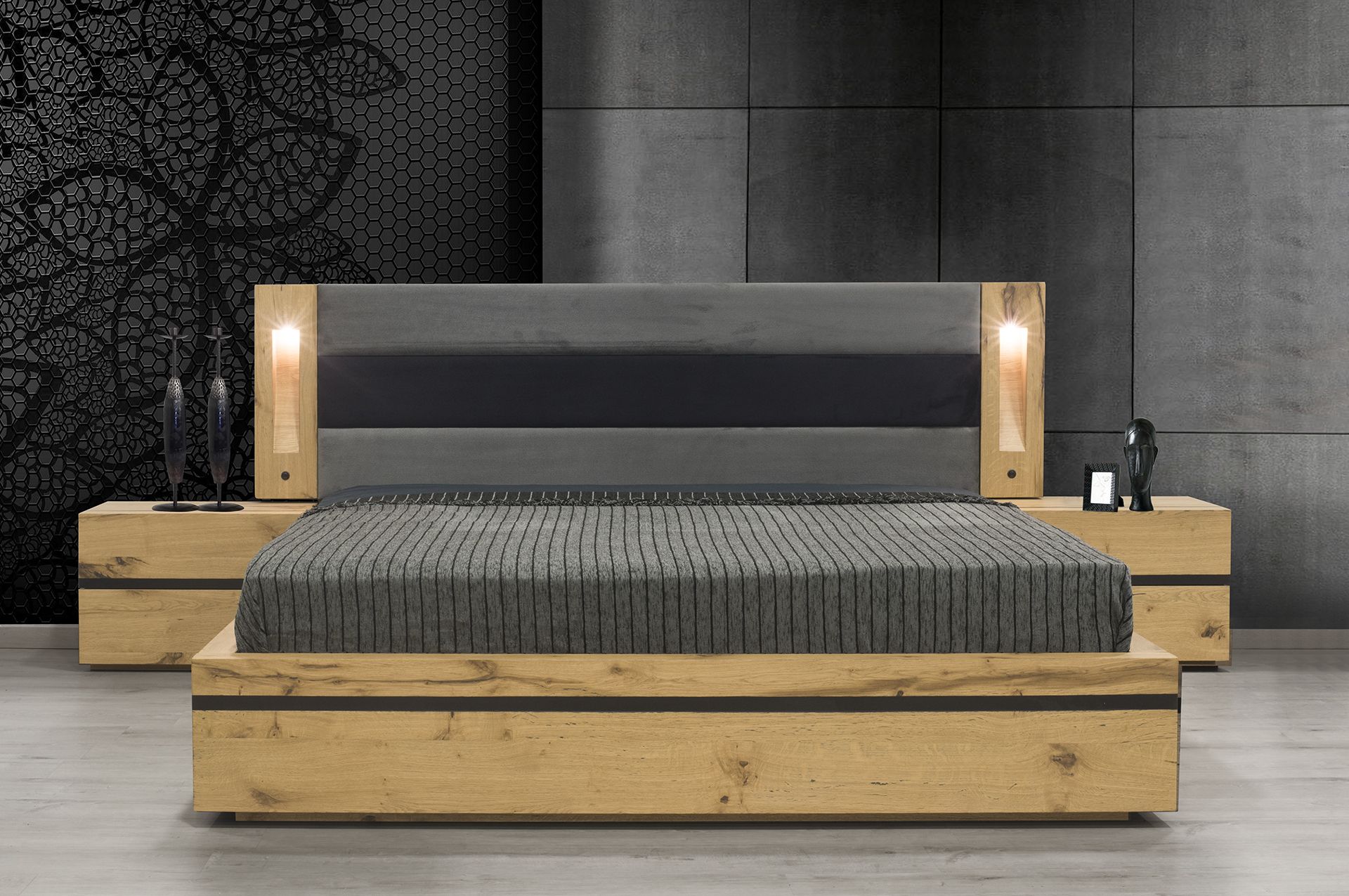Στις άκρες του κρεβατιού υπάρχουν κρυφοί φωτισμοί για ένα πιο aesthetic αποτέλεσμα αλλά και για τις ώρες που μπορεί να θέλετε να διαβάσετε το αγαπημένο σας βιβλίο!