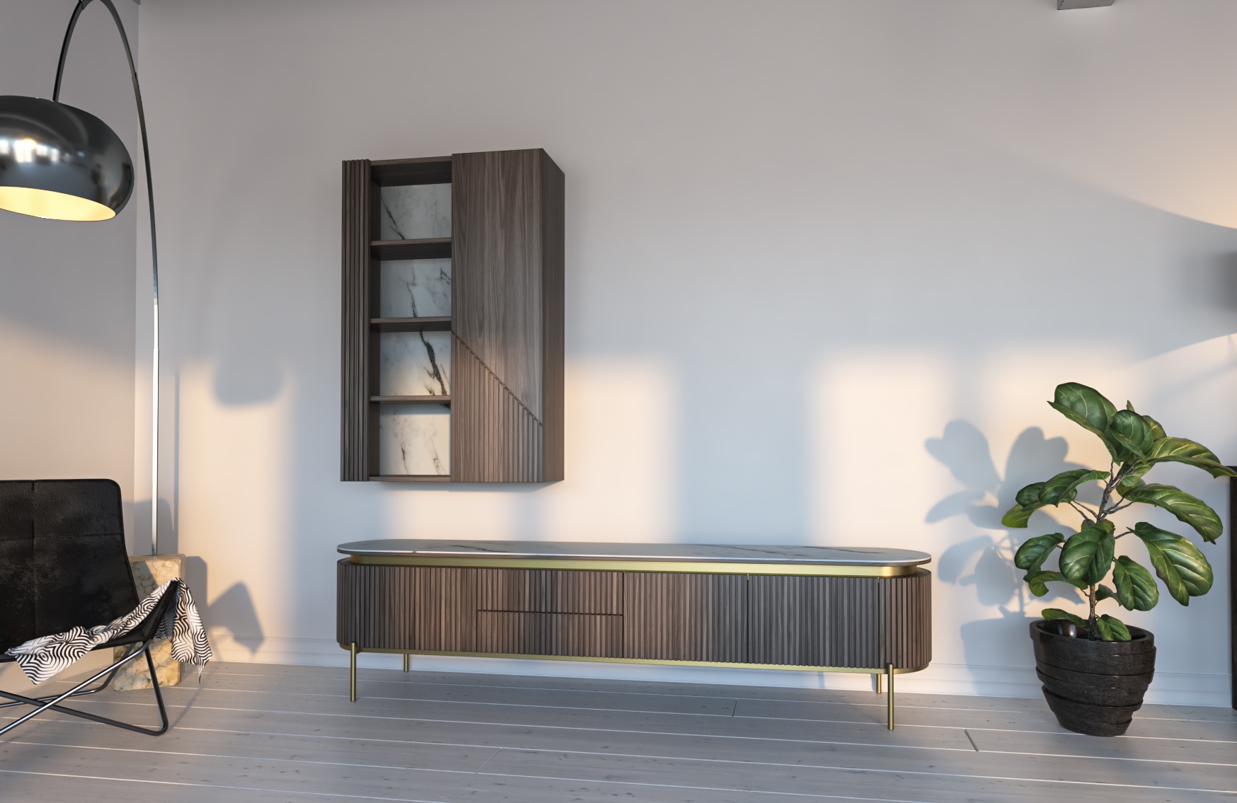 O minimal βιομηχανικός σχεδιασμός της σύνθεσης Enzo και τα εκλεπτυσμένα ξύλινα στοιχεία στις πόρτες επιτρέπουν να αναδειχθούν οι ιδιαιτερότητες του. Τέλος, η προσθήκη του κεραμικού στην επιφάνειά του καπακιού και της πλάτης χαρίζει ένα φρέσκο, πολυτελές αλλά όχι βαρύ αποτέλεσμα.