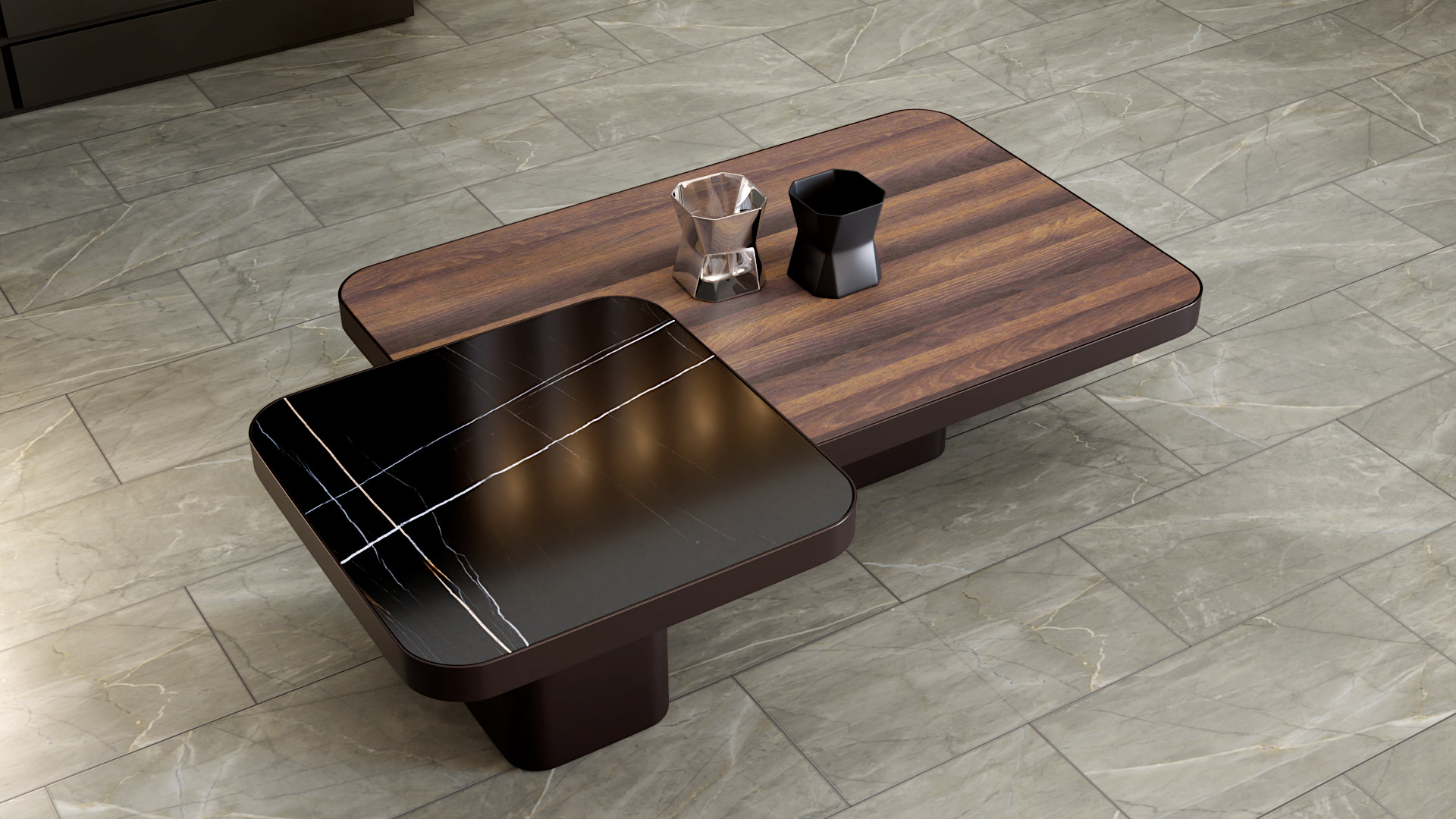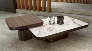 Ένα ιδιαίτερο τραπέζι σε δύο αυτόνομα κομμάτια – παραλληλόγραμμο και τετράγωνο.