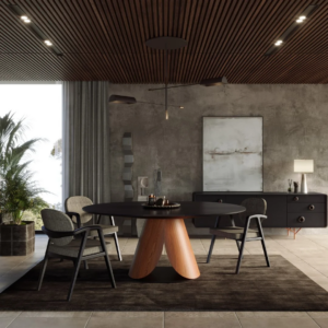 Το τραπέζι KAPPA της σειράς EDGE της ANESIS αποπνέει στιβαρότητα, με την στρόγγυλη επιφάνεια να προσφέρει μια φρέσκια, σύγχρονη πινελιά. Συνολικά, τα κοίλα στοιχεία του design προσδίδουν μια ανάλαφρη, αλλά ταυτόχρονα δυναμική αίσθηση, δημιουργώντας μια εντυπωσιακή αντίθεση για τον θεατή. Αποπνέει μια αισθητική παρόμοια με γλυπτό – η παρουσία του σε κάθε χώρο το καθιστά επιβλητικό και ενδιαφέρον, κεντρίζοντας την προσοχή. Η κατασκευή του δημιουργεί την ψευδαίσθηση ότι είναι κατασκευασμένο από ένα μόνο κομμάτι ξύλου, με τη βάση και το καπάκι να παρουσιάζουν γραμμές που κυλούν μια μέσα στην άλλη, δημιουργώντας μια ενιαία, αρμονική εμφάνιση.