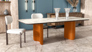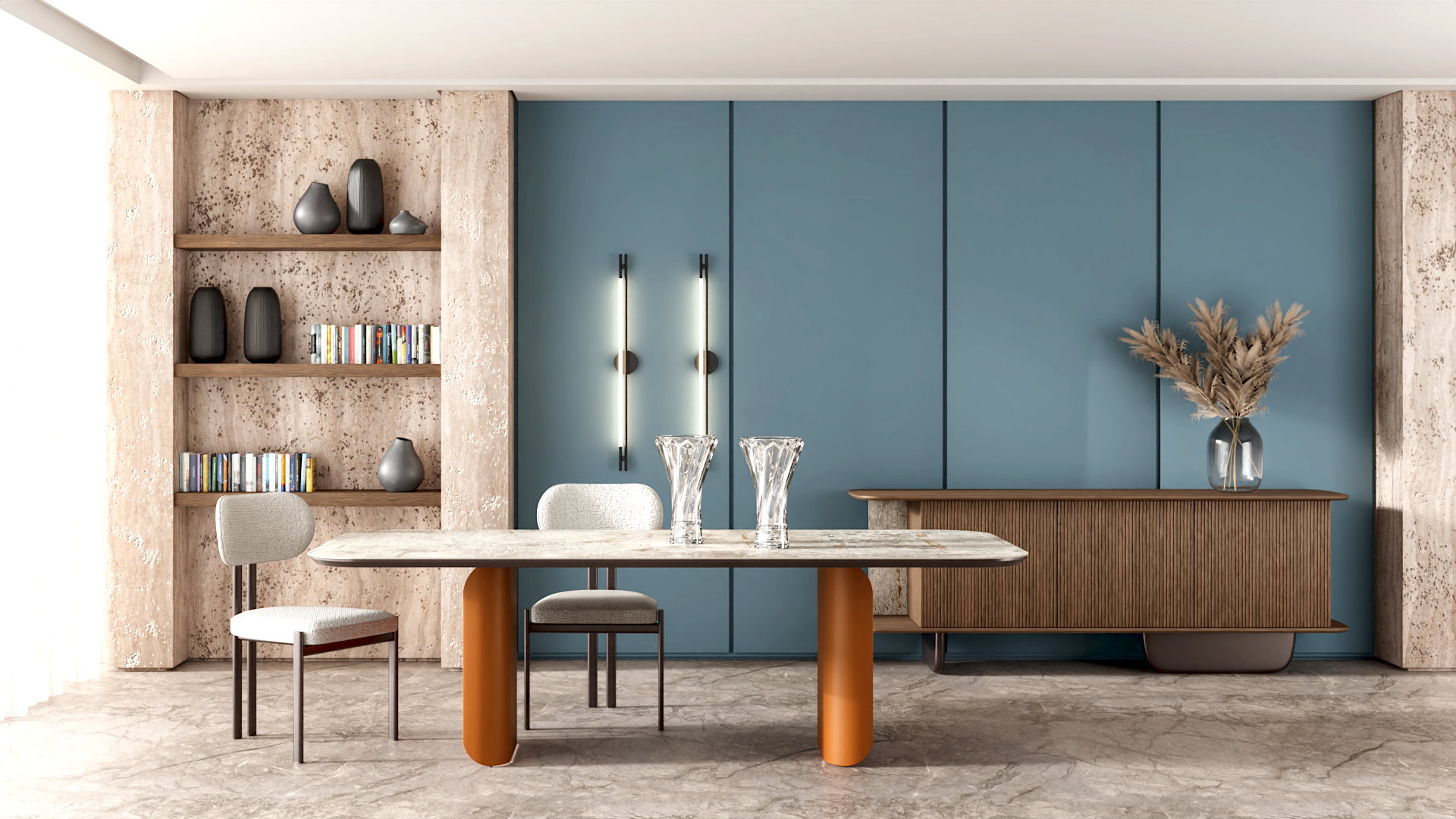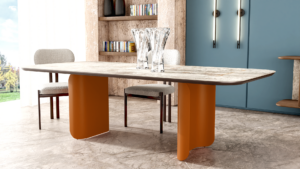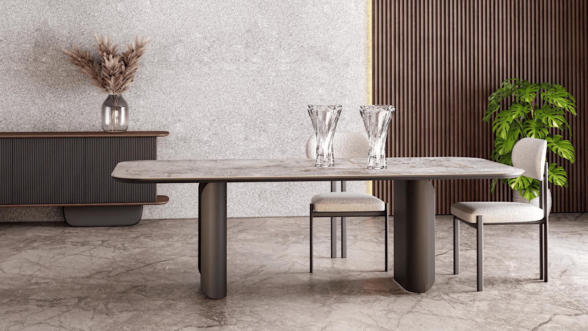 Με ματ μασίφ σίδερο στη βάση και καπάκι κεραμικό ή δρύ, η Riva είναι μια τραπεζαρία που επιβάλλεται στο χώρο και προσδίδει αέρα φινέτσας και κομψότητας.
