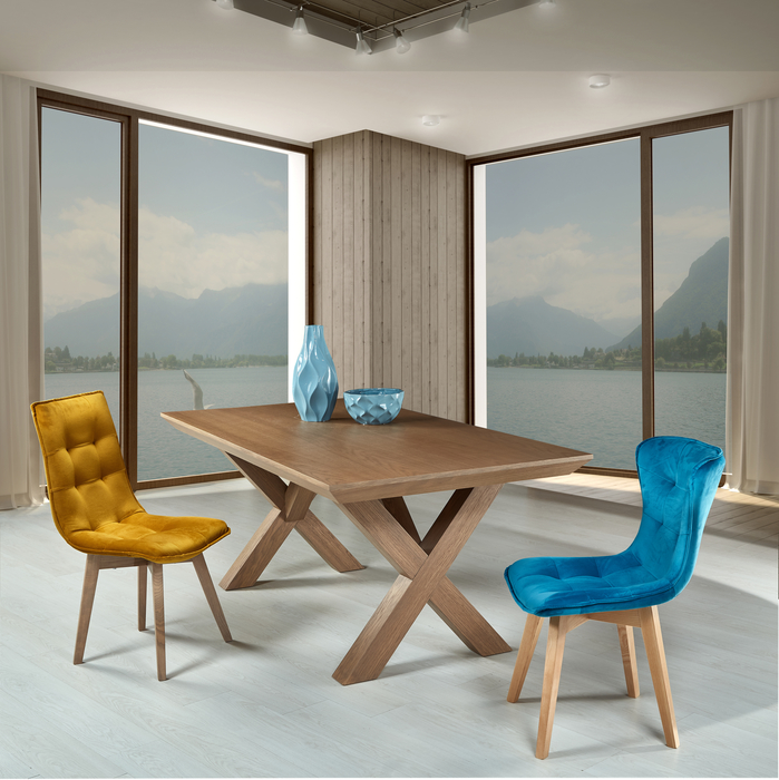 Καπάκι με φάλτσο και μία προέκταση (δυνατότητα προσθήκης δεύτερης) • Σε φυσικό δρυς • Μασίφ βάση τραπεζιού • Δυνατότητα αλλαγής διαστάσεων • Δυνατότητα επιλογής ξύλου και λούστρου