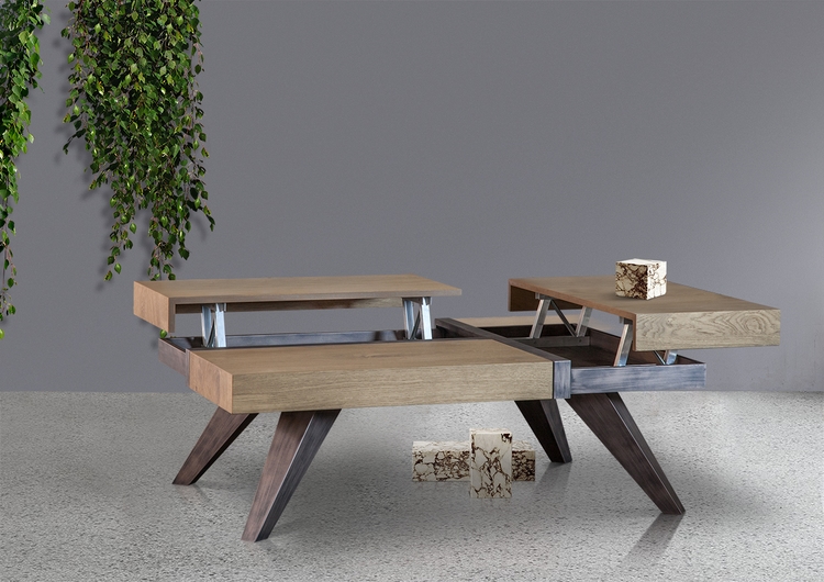 -Ελληνικής κατασκευής τραπεζάκι σαλονιού από δρυς ρουστίκ σε συνδυασμό με λάκα και 3 μηχανισμούς – σερβιτόρους με αποθηκευτικό χώρο.